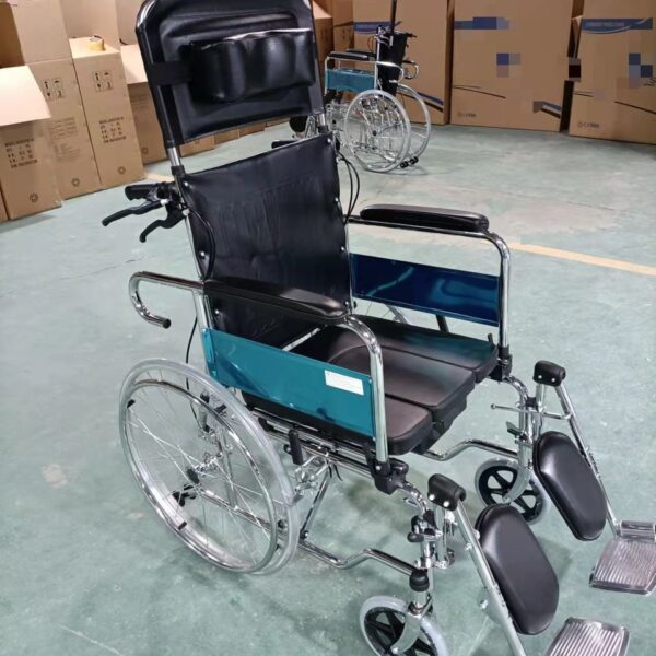 - Khung xe lăn đa năng ngả nằm HDM bằng thép mạ chrome chắc chắn, sáng đẹp, và bền. Có thể gấp gọn khi không dùng đến